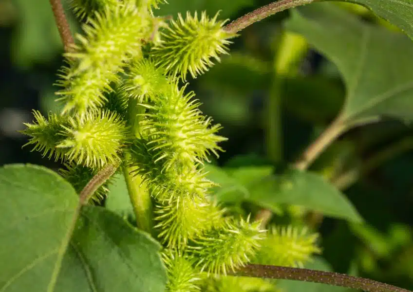 Cette adventice peut être identifiée par ses feuilles larges et ovales à la texture rugueuse et ses fructifications crochues qui s’accrochent aux vêtements. Elle pousse souvent de manière agressive aux côtés des plants de tournesol. L’identification précoce est essentielle pour un contrôle efficace.